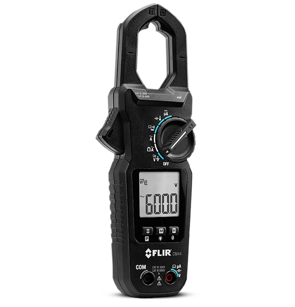 The FLIR CM4X Clamp Meter Family includes three professional and affordable True RMS meters designed for commercial and residential electricians. The CM42 and CM44 feature AC clamp measurement, and the CM46 offers both AC/DC measurement to meet your unique needs. Each meter is equipped with a bright backlit display for ease of use inside electrical panels. Accu-Tip™ technology delivers amperage measurements on smaller-gauged wires more accurately — to a tenth of a digit. All models offer MAX/MIN/AVG recording, firequency measurement, and electrical field detection to help you determine voltage presence and relative strength of the field. Made with an over-molded, easy-to-grip design, the CM4X clamp meter family is durable enough to withstand a two-meter drop, and the slim form factor is convenient to carry in your toolbag anywhere you go.