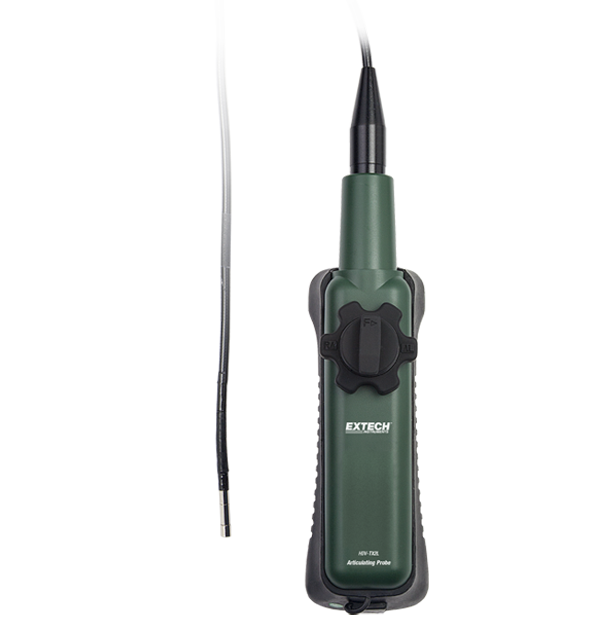 The Extech HDV-TX2L is a Wired Handset with Articulating Probe. The semi-rigid probe features a long focus range and is two meters fully extended. It connects to an HDV600 Video Scope with a patch cable adapter (HDV-PC). It features an articulation knob and a 6 mm camera head.