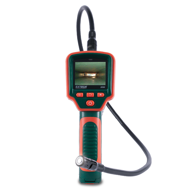 The Extech BR80 Video Borescope Inspection Camera features a compact handheld design that makes it easier to detect, diagnose, and solve inspection problems. The BR80 features a lightweight, waterproof (IP67) 17 mm camera diameter camera head with a 1 m (39 in) flexible goose neck cable which retains its configured shape. 2 bright LED lamps with a dimmer help to illuminate viewed objects. It comes with a 17 mm camera probe complete with a cable, 4 AA batteries, extension tools (mirror, hook, and magnet), and a user manual.