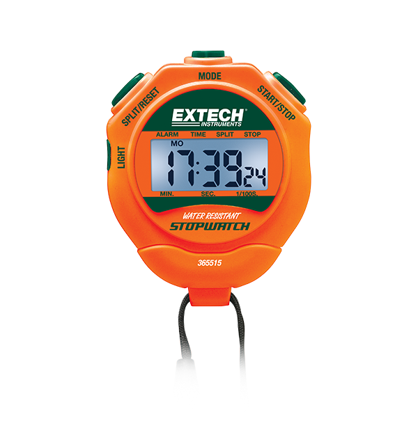 The 365515 is a digital stopwatch and clock. This stopwatch features a 12 or 24 hour clock format and programmable alarm with hourly chime. The backlight can be used for viewing at night or in dimly lit areas and turns off automatically after four seconds. Complete with LR44 battery and 1 m (39 in) snap-away neck strap.
