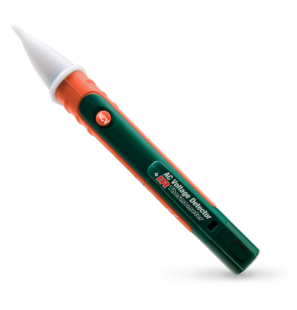 Quickly check for the presence of live wires before testing. Suitable for outlets or against wire insulation testing. Model DV40 combines a CAT III-1000V voltage detector with a wide range from 50 to 1000 Volts with an infrared thermometer that can measure and display non-contact surface temperatures on the built-in LCD screen using a from -30°C to 230°C (-20°F to 445°F). 1:1 distance to target ratio. Includes 3 LR44 batteries.