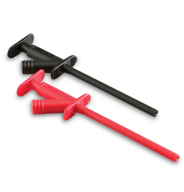 The Extech TL741 is a set of two Heavy Duty Plunger Style Hook Clips. Intended for gripping component lead or wire, they can withstand up to 1000 V and 10 A. Each clip has a 2 mm (0.08 in) gripping diameter and an overall length of 140 mm (5.5 in).