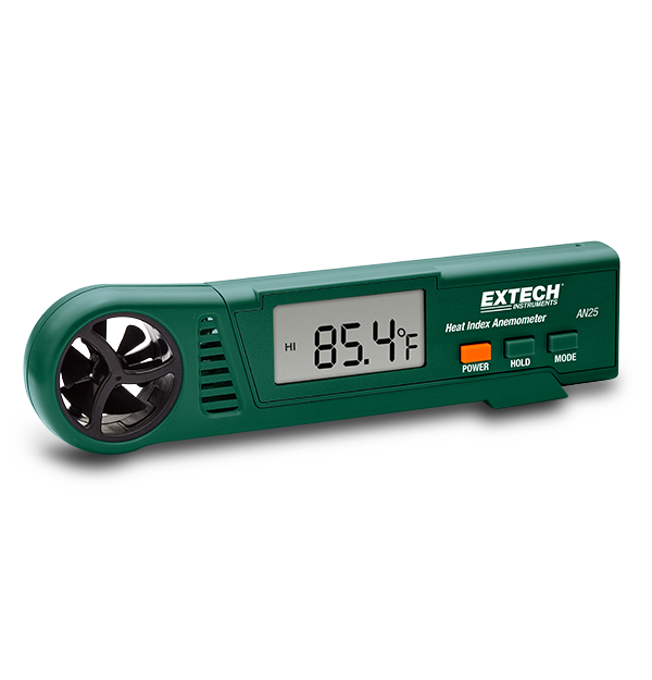 Extech’s AN25 pocket sized Heat Index Anemometer Pen not only measures air velocity, but also monitors heat index during hot humid days to prevent heat stroke during outdoor activities, sporting events, or indoor workplace. Its pen-sized design makes it convenient to fit into your pocket and carry it wherever you go. Complete with CR2032 battery.