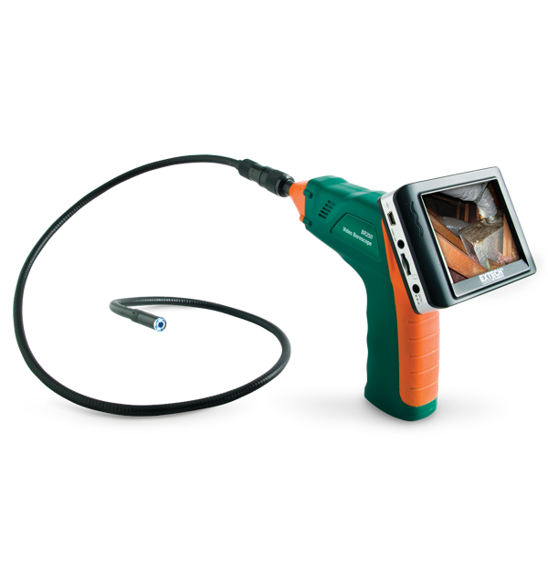La BR250 es una cámara de inspección con videoboroscopio con un diámetro de cámara de 9 mm y un monitor LCD TFT a color de 3,5 pulgadas. Ideal para la inspección del hogar (inspección de paredes en busca de moho, infestación de insectos, ubicación de cables eléctricos o tuberías de agua); HVAC (inspeccionar conductos internos, detrás de motores y compresores); Automotriz (vista interior o alrededor de motores y transmisiones); Industrial (inspeccionar la integridad de la soldadura, equipos de proceso, engranajes, máquinas de moldeo); Aplicaciones aeroespaciales (inspecciones de aeronaves en busca de contaminación, escombros, grietas u otros daños) y gubernamentales (inspecciones de seguridad). Campo de visión en primer plano sin reflejos. La pantalla en color extraíble inalámbrica se puede ver desde una ubicación remota de hasta 32 pies de distancia del punto de medición. Incluye: 4 pilas AA, tarjeta de memoria micro SD con adaptador SD, cable USB, herramientas de extensión (espejo, gancho, imán), cable de vídeo, adaptador de CA (100-240 V, 50/60 Hz), soporte de base magnética y estuche duro.