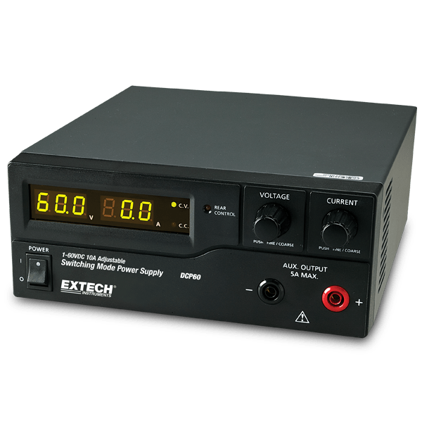 The Extech DCP60 is a highly efficient Telescoping AC Current Detector. It incorporates upgraded SMPS circuitry with small form factor, benefits from an automatic cross-over for CC and CV, has three voltage/current presets, and can be remote controlled. The DCP60 is perfect for solving a variety of loading conditions and applications. DC power supplies are used to simulate, power, and test circuits, instruments, solenoids, relays, and motors. The variable DC voltages and currents (0 V to 60 V and 0 A to 30 A) conveniently permit the user to match the supply's output to a specific application. For example, if an integrated circuit requires 5 volts or 9 volts power, the supply can be configured to output the necessary signal with high precision. Complete with power cords.