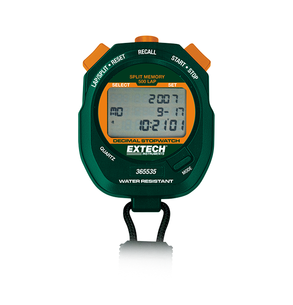 El cronómetro y reloj 365535 tiene resoluciones seleccionables por el usuario de 1/100 de segundo, 1/1000 de minuto y 1/100,000 de hora. Las características adicionales son: un marcapasos de 5 a 240 pitidos por minuto y una gran pantalla triple de contraste ajustable. Incluye batería de litio CR2032 y correa para el cuello de 1 m (39 in).