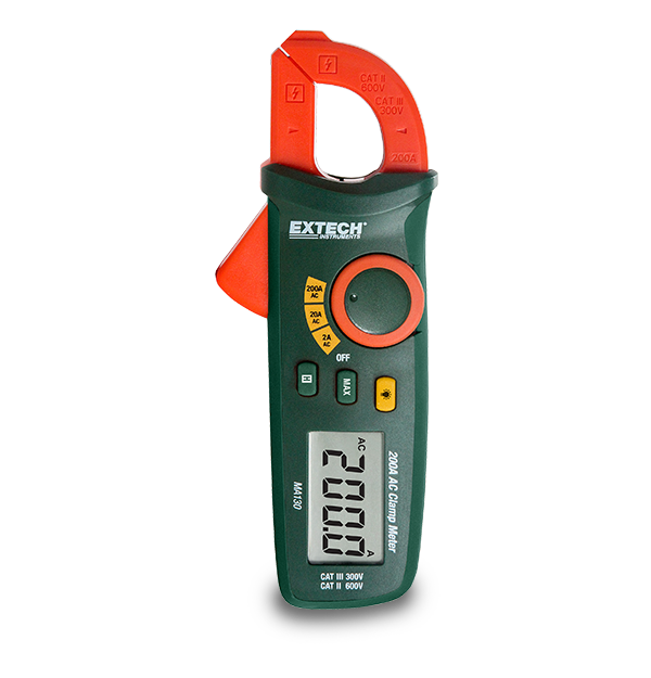 Le mini multimètre à pince CA de 200 A Extech MA130 possède une conception facile à utiliser de poche avec un écran ACL rétroéclairé et une mâchoire de 16 mm (0,6 po) qui convient aux conducteurs jusqu’à 300 MCM. Il permet des mesures dans des endroits restreints et dispose de mesures manuelles de courant avec trois plages parmi lesquelles choisir. Contient des données permettant de figer les relevés affichés et les valeurs maximales permettant d'enregistrer les relevés de courant maximum. Comprend deux piles AAA.