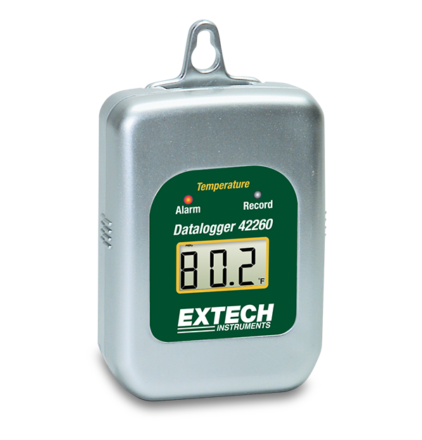 The Extech 42260 is an additional Temperature Datalogger for use with the 42265 and 42266 kits. This waterproof (IP65) datalogger records up to 8,000 readings and has three start methods (scheduled, immediate or magnetic). The 42260 has a wide operating temperature range from -40°C to 85°C (-40°F to 185°F). Multiple dataloggers can be programmed and data downloaded from a single docking station (requires a docking station for initial programming).