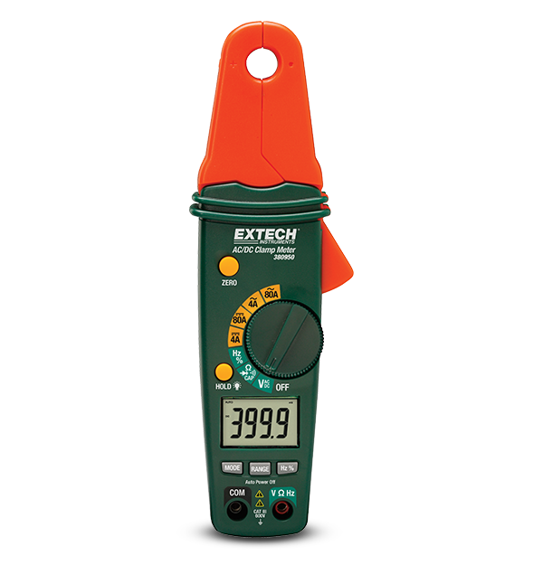 La compatta Extech 380950 è una mini pinza amperometrica AC/DC. 380950 dispone di una ganascia di diametro estremamente piccolo per raggiungere aree ridotte fornendo al contempo una risoluzione di 1 mA e sensibilità alle correnti molto bassa. Questa pinza amperometrica esegue attività di risoluzione dei problemi essenziali nella manutenzione degli impianti, nei lavori elettrici, HVAC e di telecomunicazione, nonché nelle riparazioni di impianti elettrici residenziali, di flotte, mezzi nautici e motociclette. Completa di cavi di misura, due batterie AAA da 1,5 V e custodia da trasporto.