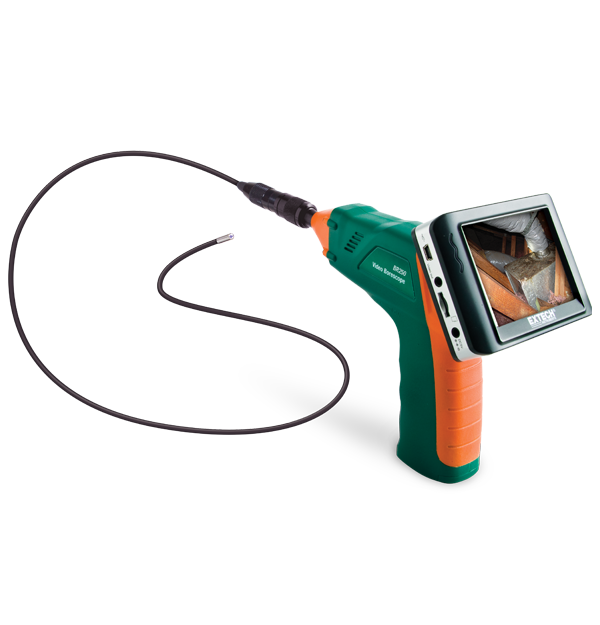 La telecamera di ispezione per boroscopio video Extech BR250-4 con una telecamera da 4,5 mm offre un campo visivo macro e antiriverbero. Comprende un monitor LCD TFT wireless a colori da 8,9 cm (3,5") rimovibile dalla base, visualizzabile da una postazione remota, a distanza fino a 9,8 m (32 piedi) dal punto di misurazione. Le immagini e i video possono essere acquisiti con una marca temporale e riprodotti sul monitor o visualizzati su un PC tramite ingresso USB. Ideale per ispezioni domestiche, HVAC e applicazioni automobilistiche.