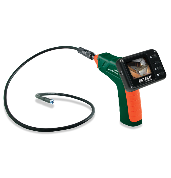 BR150ビデオボアスコープは、61mmのカラーTFT LCDモニターと、高解像度、眩しいグレアのない、クローズアップ表示用のデュアルライトシステムを備えた防水の(IP67)小型の9mmカメラヘッドを備えています。グースネックケーブルは、構成した形状を保持し、着脱可能なディスプレイで簡単に収納できます。単3電池4本、延長工具(ミラー、フック、マグネット)、ビデオ出力ジャック、ハードケースが付属。