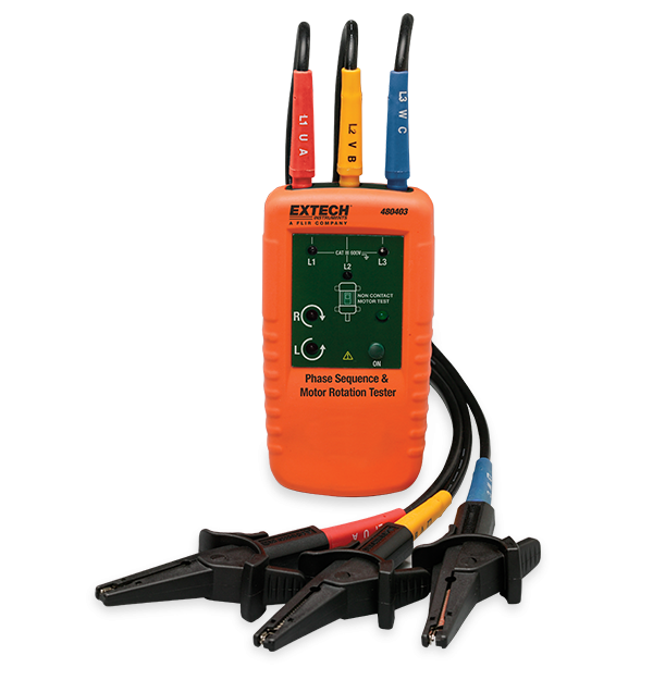 Extech 480403 모터 회전 및 3상 테스터는 40V ~ 600V 정격 범위를 가지고 있어 2Hz ~ 400Hz 주파수 범위에서 3상 전원의 위상 방향을 테스트할 수 있습니다. LED는 위상 방향(시계 방향 또는 반시계 방향)과 각 위상이 활성 상태인지 여부를 표시합니다. 또한 잘못된 배선으로 인해 모터가 손상되지 않도록 모터의 회전 방향도 나타냅니다. 측정기에는 케이블과 3개의 대형 컬러 코딩 앨리게이터 클립, 파우치 케이스 및 9V 배터리가 함께 제공됩니다.