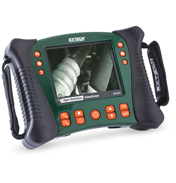 HDV600 비디오스코프는 적용 분야의 요구 사항에 적합한 카메라 프로브가 포함된 8가지 키트 옵션을 제공합니다. 굴절 및/또는 무선 기능을 갖춘 다양한 프로브 길이와 카메라 직경 중에서 선택해 보십시오. 낙하 방지 기능이 탑재된 이 방수 비디오스코프는 고화질 640×480 해상도의 5.7인치 컬러 LCD TFT를 갖추고 있습니다. 포함된 SD 메모리 카드는 14,600개 이상의 이미지를 저장합니다. 음성 주석이 포함된 비디오 녹화(최대 4시간). AV 출력으로 모니터에서 이미지 및 비디오를 바로 볼 수 있습니다. SD 카드 또는 USB 출력을 통해 비디오 및 이미지를 PC로 전송할 수 있습니다. 옵션인 무선 송신기를 사용하면 측정 지점에서 모니터로 최대 30m까지 비디오를 전송할 수 있습니다. SD 카드, 3.7볼트 충전식 리튬 폴리머 배터리, 패치 케이블, AC 어댑터, USB 및 AV 케이블, 휴대용 하드 케이스 포함.