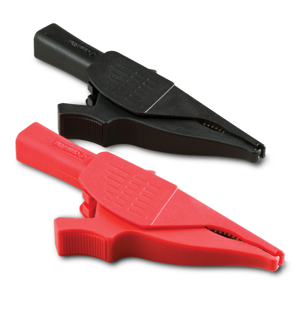 Extech TL708 鳄鱼夹带有齿形钳口,确保牢牢抓握细线。这是一种重载鳄鱼夹,具有 1000 V、6 A CAT IV-600 V 和 CAT III-1000 V 安全等级。每个钳口的长度为 2.5 cm,开口宽度为 4.1 cm。鳄鱼夹的总长度为 10.7 cm。